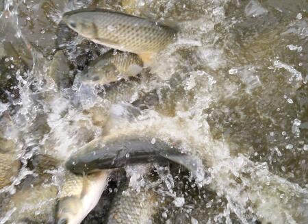 3、鱼种放养:春节前后,每亩放规格为200-250克/尾的草鱼种300尾,规格为15-20尾/公斤的鲫鱼种300尾,规格为5-6尾/公斤的鲢鱼种50尾、鳙鱼种10尾。鱼种放养前用5%食盐水浸泡消毒5-10分钟。
