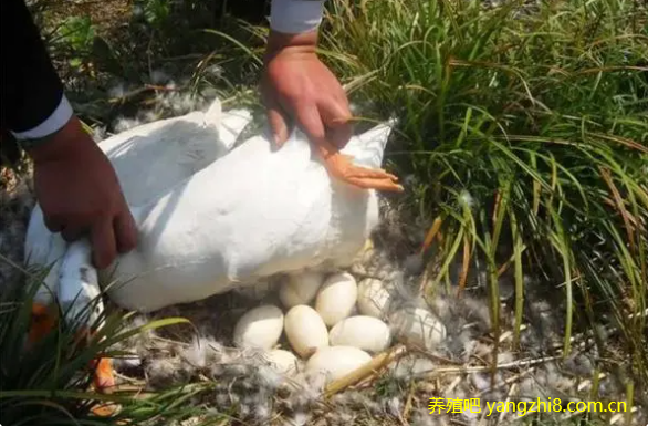 选择高产品种:我国豁眼鹅(山东叫五龙鹅,辽宁叫昌图鹅)、籽鹅(产于黑龙江缓化和松花江地区)的产蛋量是世界上最多的鹅种,一般年产蛋可达14千克左右,饲养较好的个体可达20千克,年产蛋量可达130枚~160枚。 提早开产日龄我国鹅种中的小型白鹅开产日龄约为5个月,年产蛋量100枚~120枚,蛋重125~150克。大型鹅开产日龄约7个月,年产蛋35枚~50枚,蛋重220克~250克。 改善饲养在产蛋前3周就要加强补饲,下足催蛋谷,每天每只鹅可补喂秕谷300克~500克,并适当喂些青料,在母鹅的运动场撒些压碎的贝壳、田螺壳和蛋壳等,让母鹅自由采食。